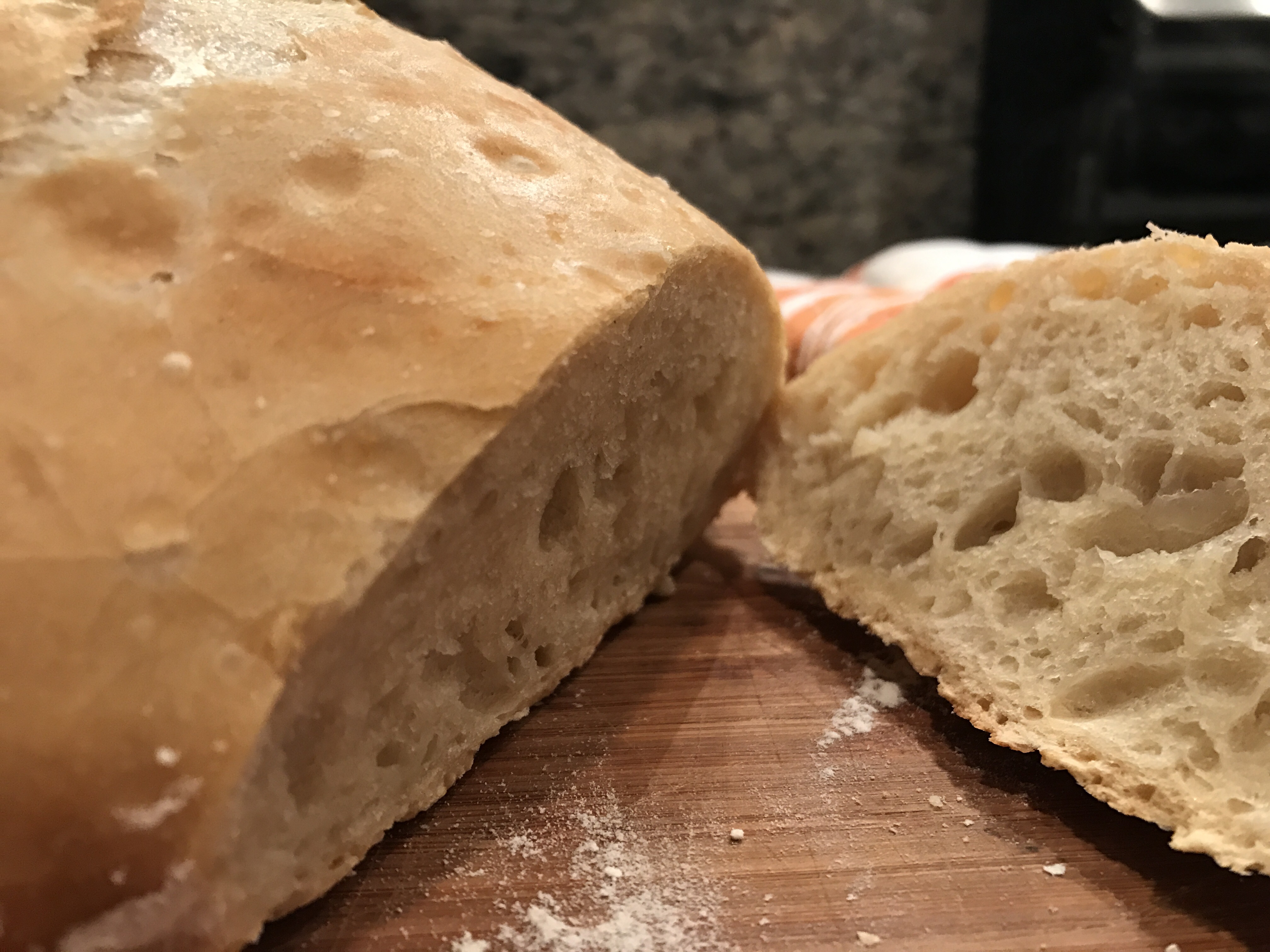 So to that end, I don’t want to arrive at the table ragged from slave cooking an elaborate meal. I want real food prepared without a large amount of prep time! Enter this Artisan Bread that took me exactly 7 minutes of hands on time! 5 last night and 2 tonight!
