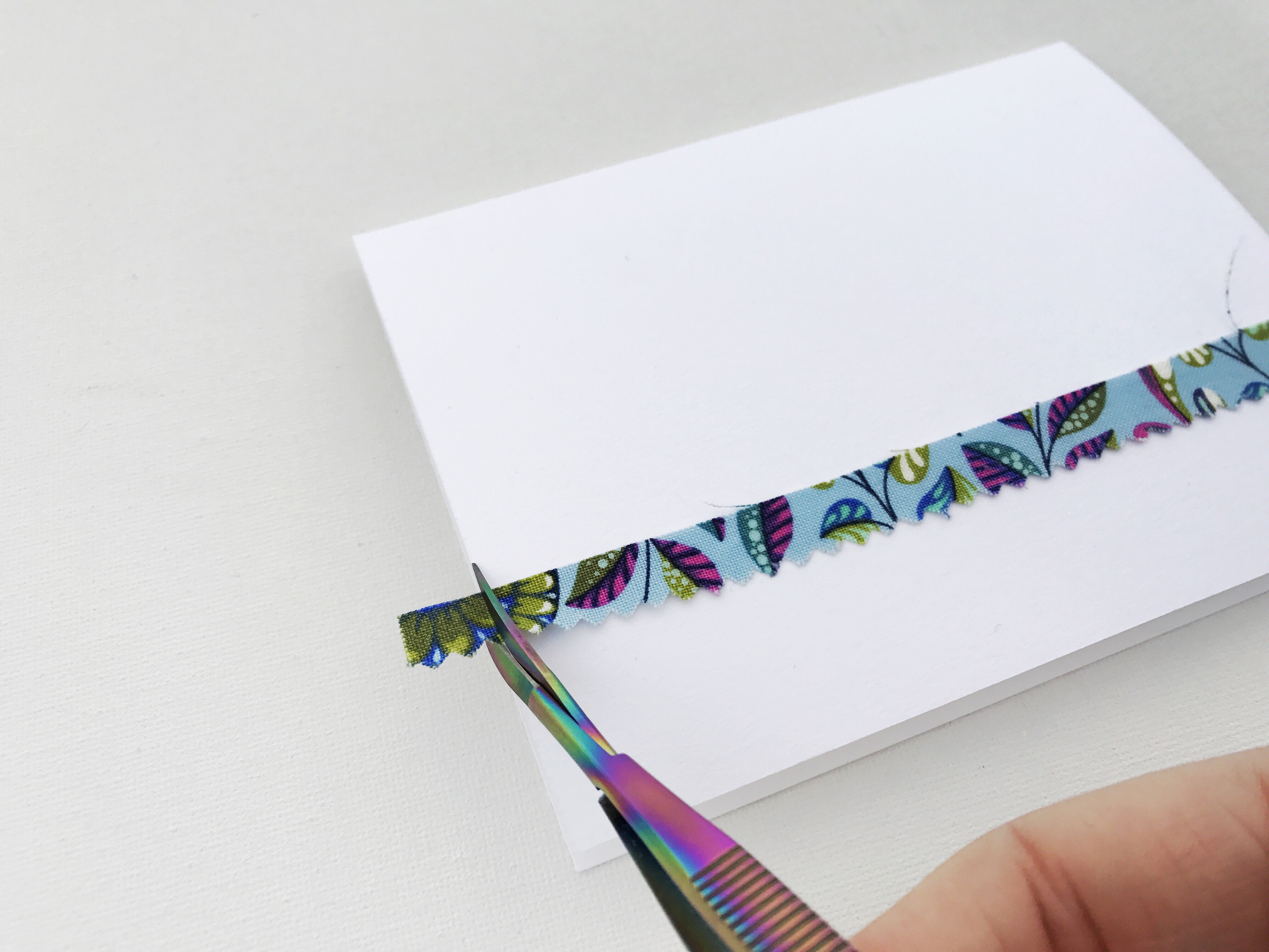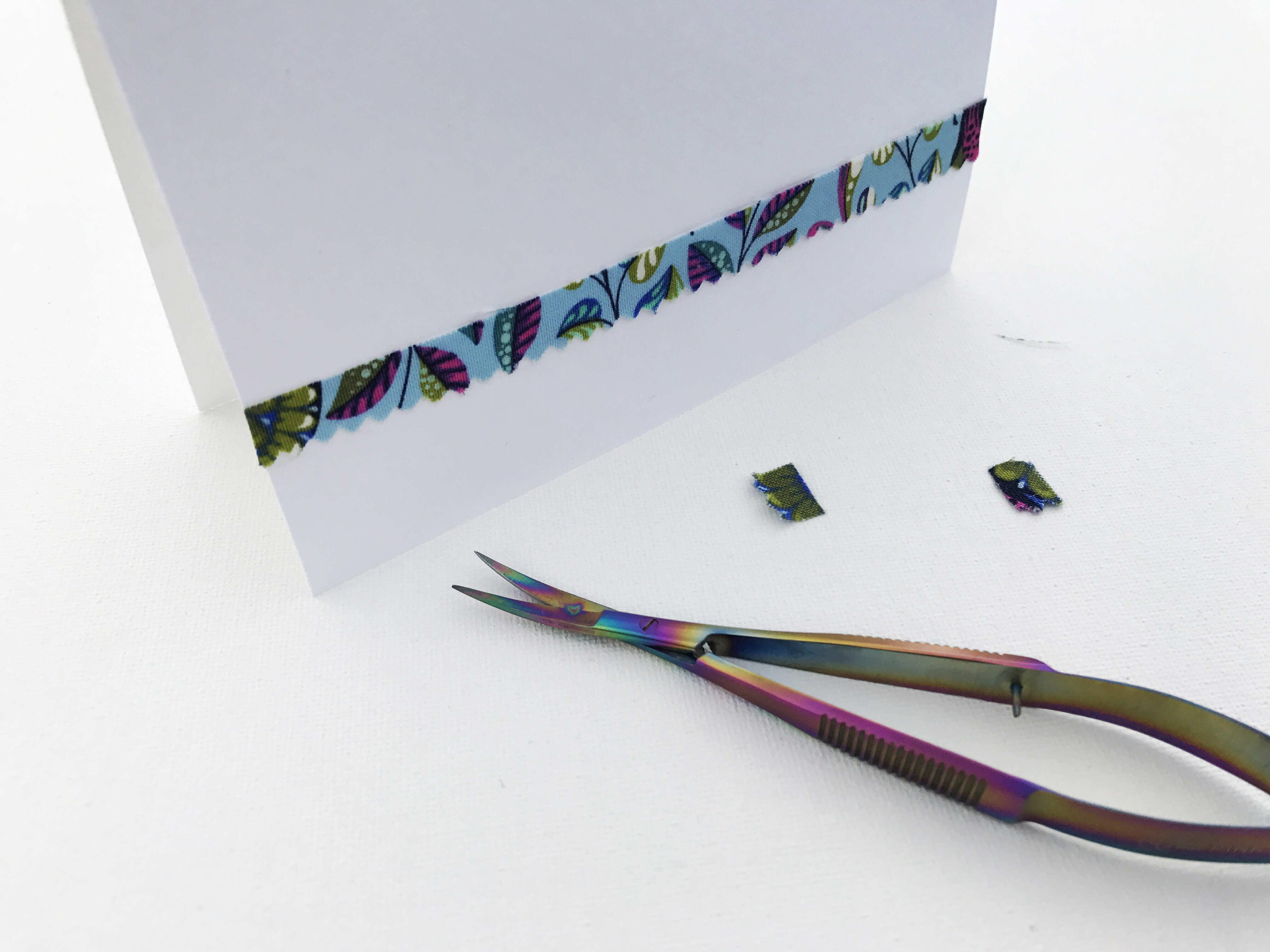 Trim the ends even with the edge of the card and any loose or stray strings.